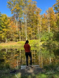 Fly-Fisher enjoying a beautiful fall day at our Trophy Pond.