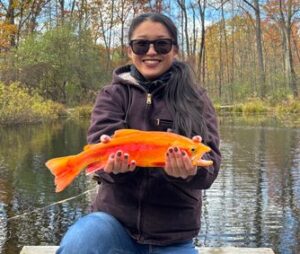Our Pond fishes great in November. If you don’t mind colder weather, you will enjoy a fabulous day of fly-fishing.