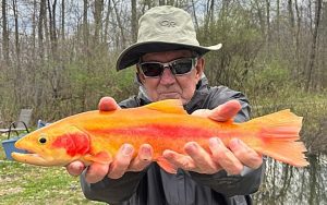 Our pond Contains a healthy population of native Brook trout in addition to: Brown, Rainbow, Goldens & Tiger Trout!